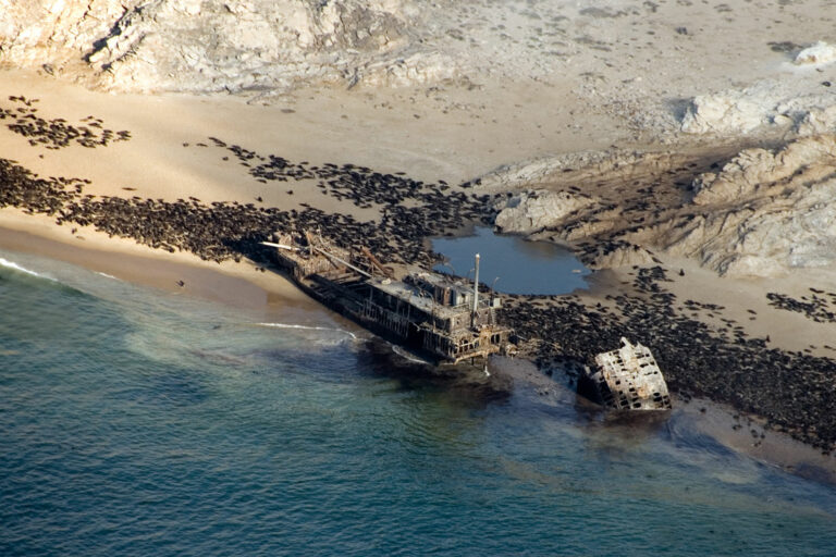 The population sounds like an enormous flock of bleating ewes and lambs – a hugely impressive phenomenon. Cape Cross is named after the stone cross that was erected there in 1486 by the Portuguese navigator Diego Cão, who would have been the first European to set foot on what is now the coast of Namibia. Two replica crosses, erected in 1893 and 1980, still stand there today.