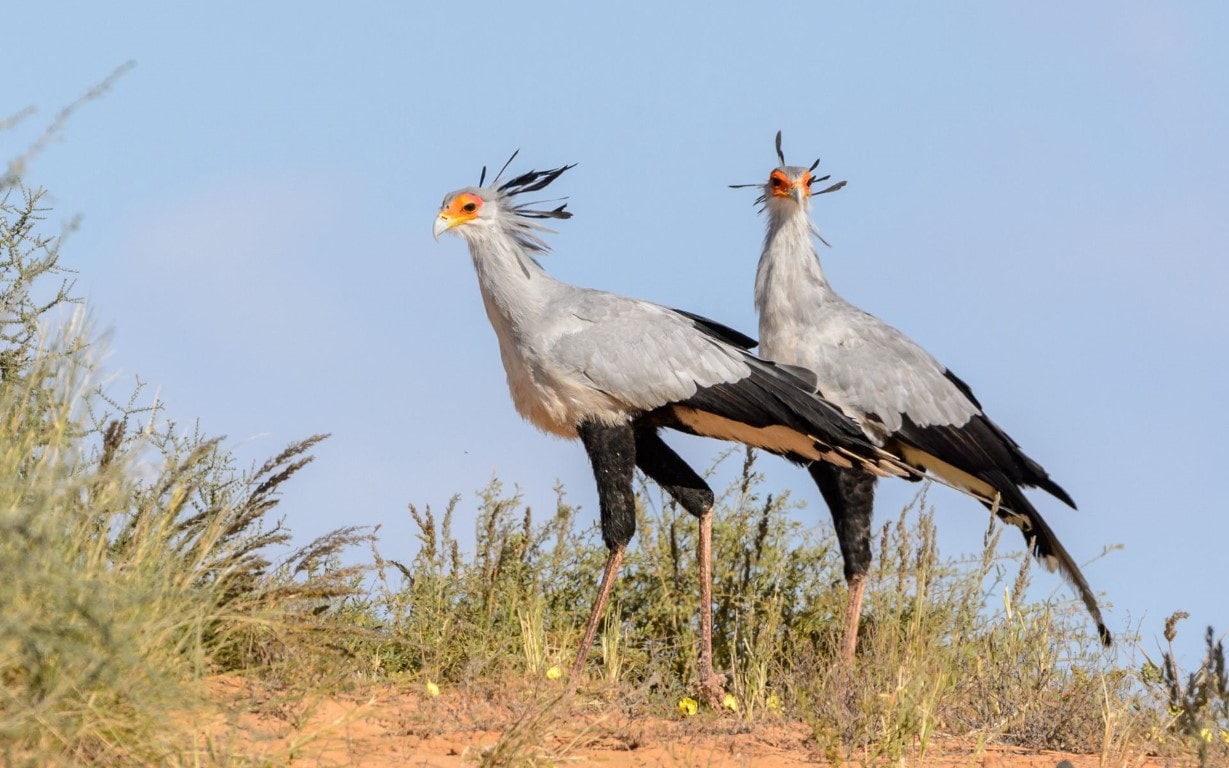 - Secretary bird: a large ground-dwelling bird of prey, known for its distinctive appearance and hunting methods; they hunt and eat snakes by repeatedly stomping on their prey with their powerful feet to kill or immobilise it (it’s fascinating to watch).