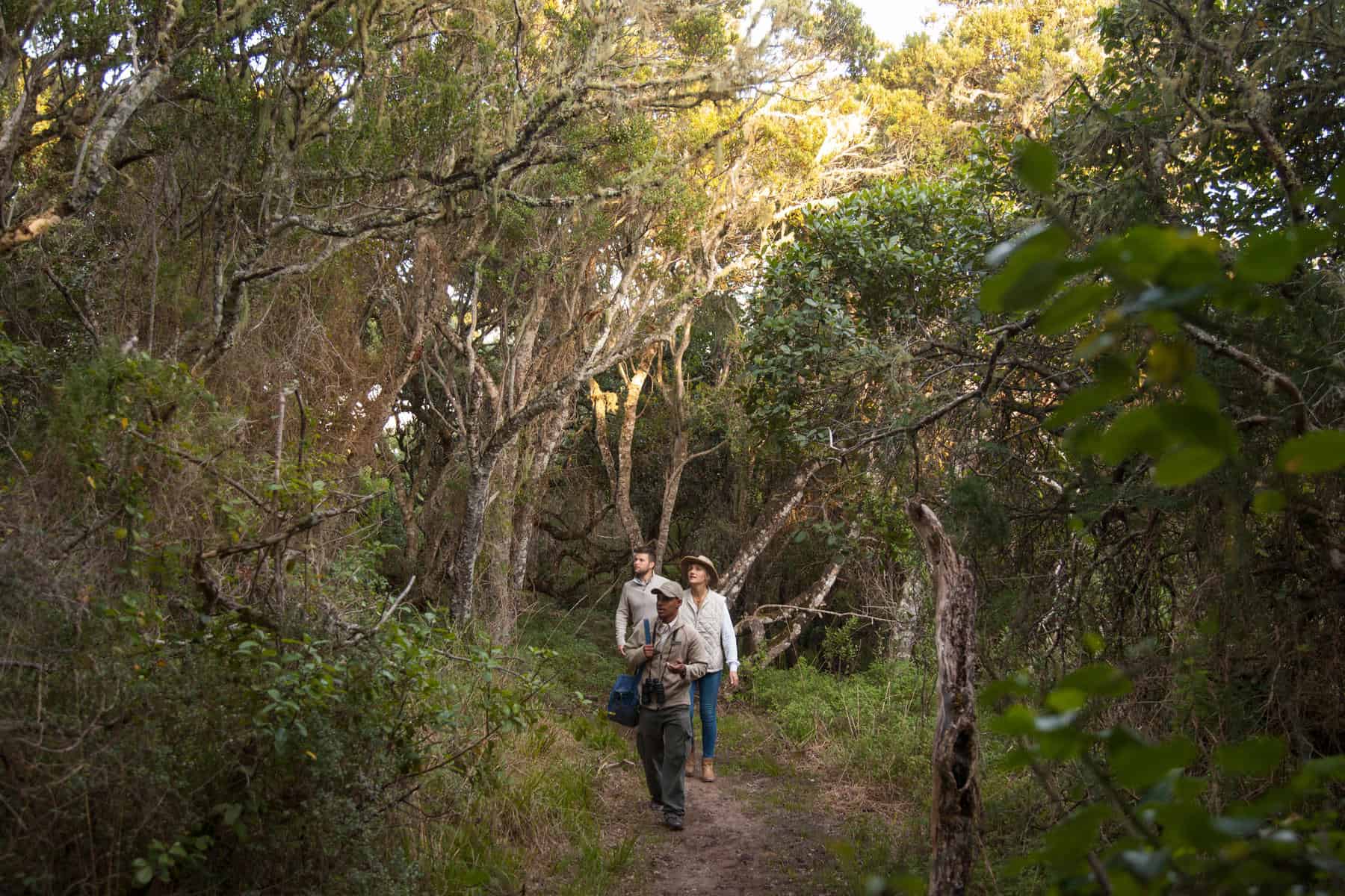 Picture this: a forest of trees, hundreds of years old, with twisted branches reaching up into the canopy above. Sunlight streams through, dappling the moss-covered trunks. Birdsong is all around you as you walk through this enchanting setting. The milkwood forest is just one environment you can explore in Grootbos – there are hikes and walks in a variety of settings, from mountain terrain to fynbos lands, that suit every fitness level.