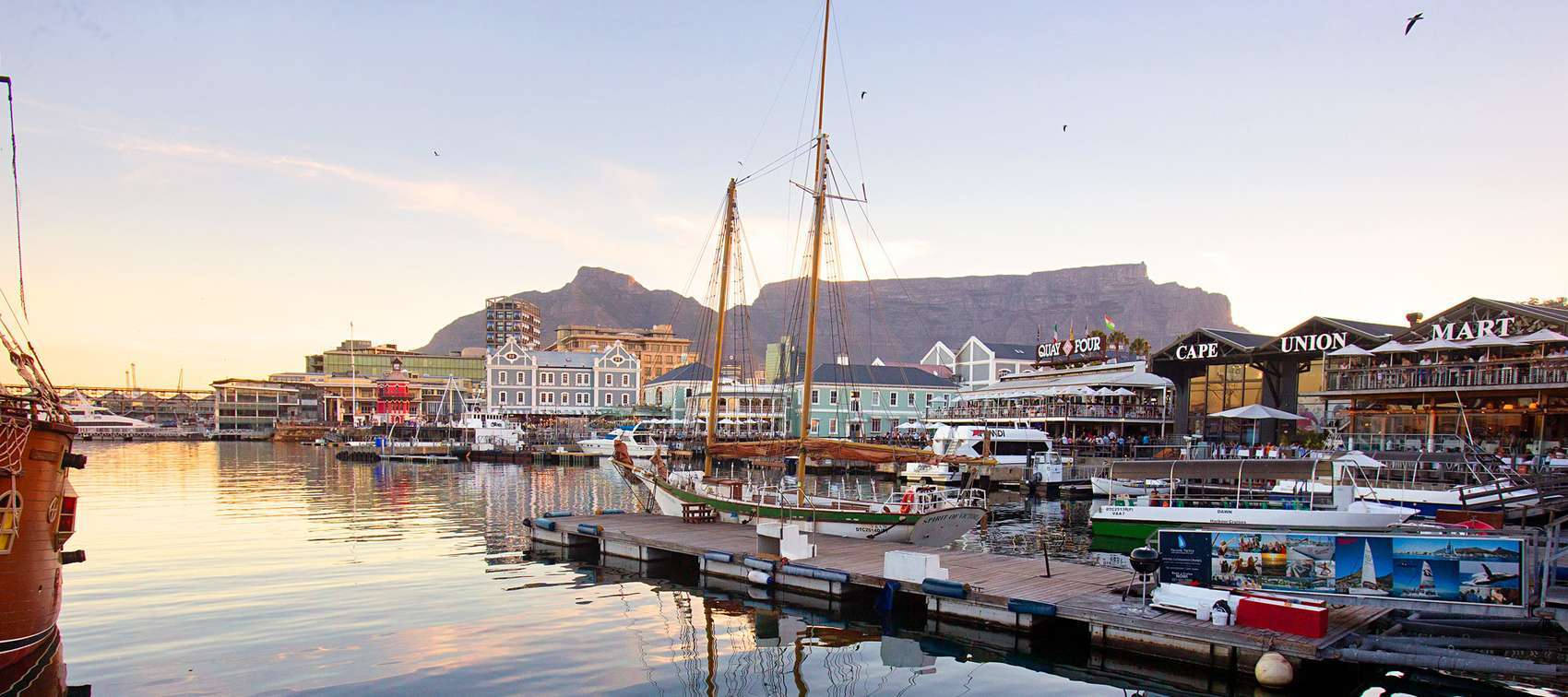It may be right beside Cape Town’s busy city centre, but life’s pace slows down upon arriving at the V&A Waterfront. Boats hang silently in the water and different rides go out throughout the day – some with onboard bars, some on a pirate boat and some to watch the sunset at sea.