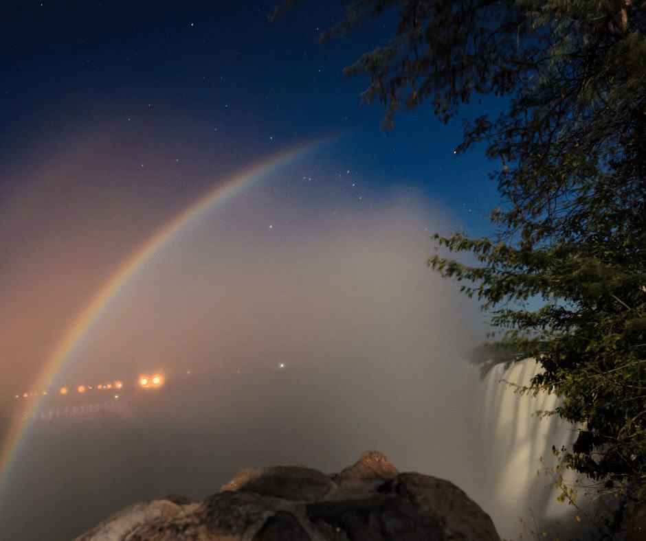 Experience the rare and beautiful lunar rainbow at Victoria Falls only during the full moon. Lunar rainbows, also known as moonbows, are rainbows that take place at night when a rainbow is seen in the light of the moon.