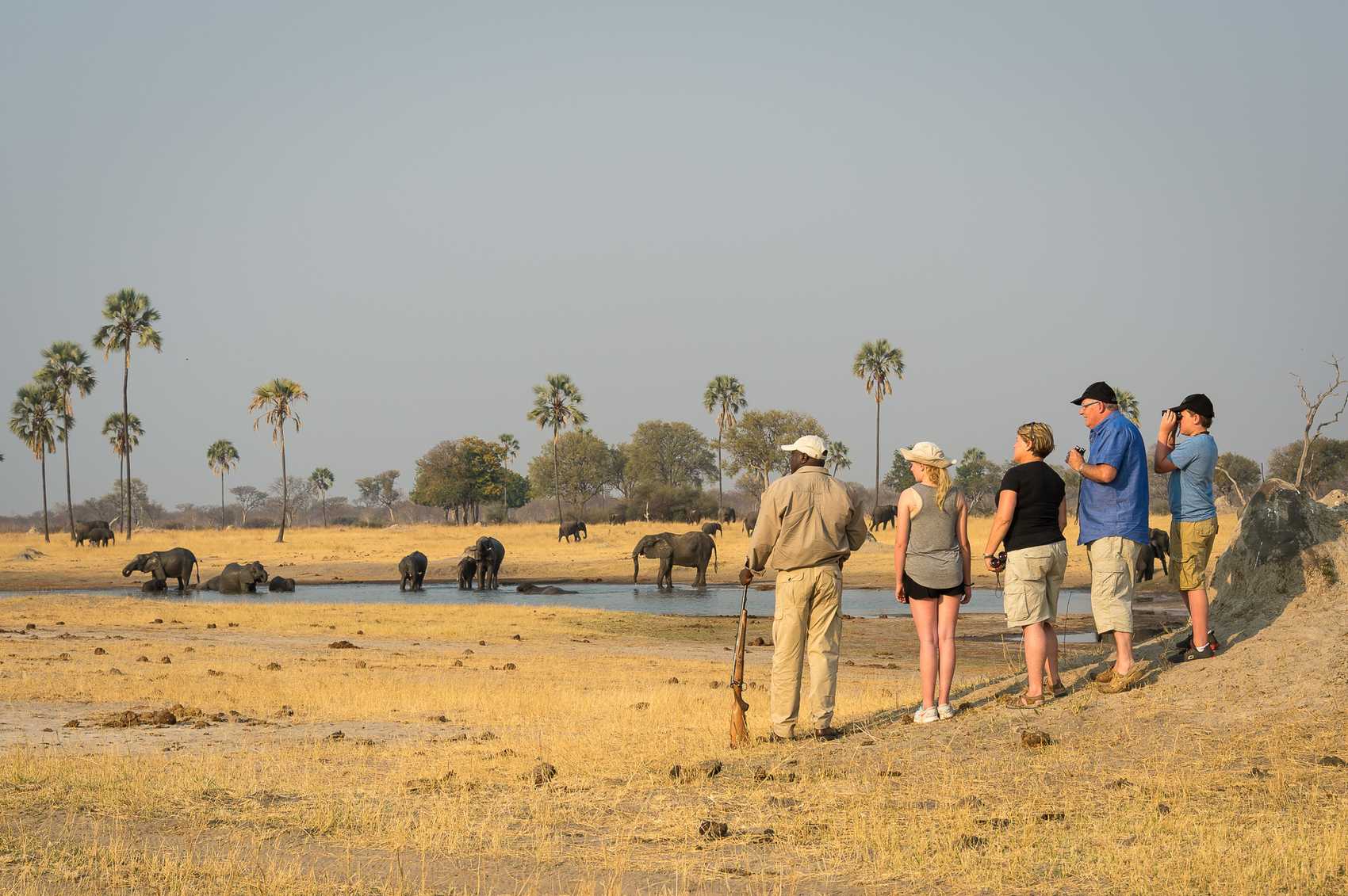 Wildlife viewing at Matusadona National Park is magnificent. Hippos wallow in the shallows, and elephants and buffaloes are abundant.