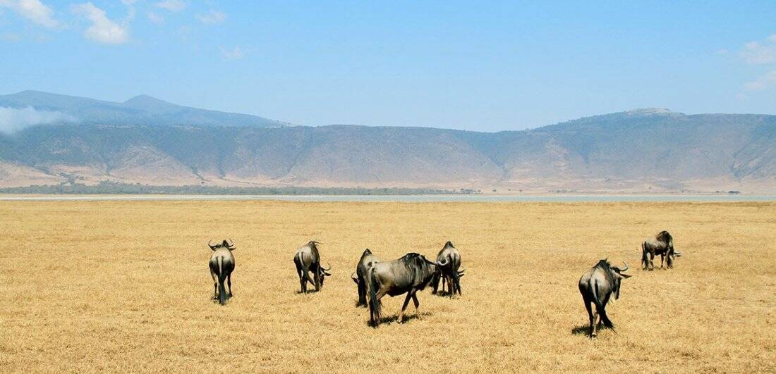 Serengeti South (December to March): Spend time game viewing on grassy plains, where the wildebeest gather to give birth around February each year. Watch thousands of wobbly-legged young finding their feet, something they have to do quickly to avoid the watchful big cats that stalk these plains.