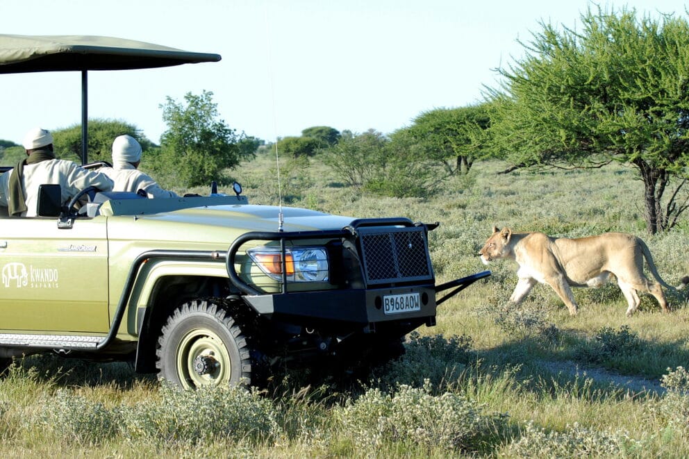 This safari takes you to three of Botswana’s star conservation areas. You’ll begin in the Central Kalahari Game Reserve with its red sand dunes, salt pans and open plains. Your next destination is the Okavango Delta where you will get a chance to enjoy game drives, as well as mokoro rides along the waterways. The Kwando Linyanti wetlands is the last of the wilderness areas on your journey. It’s a world of papyrus and reed swamps, grasslands and riverine forests, and home to incredible wildlife.