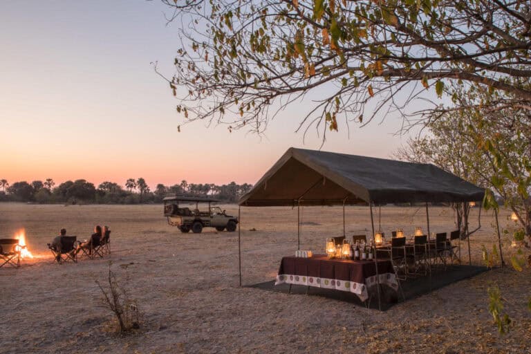 You will spend time game viewing between the dry-land habitats of the lead-wood and camel-thorn woodlands and savannahs and the riverside banks of the Khwai River, as well as in the western parts of the concession. The Mababe region boasts excellent populations of both bull elephant as well as breeding herds. Lion, leopard, serval and African wildcat are common predators of the region with wild dog and cheetah being less common. Buffalo use this area seasonally with large herds moving in during the summer rains. Other ungulates include tsessebe, blue wildebeest, giraffe, kudu, sable antelope, roan antelope and impala, and even eland and oryx in the western parts. It is important to note that night drives and guided walks are not permitted within the national parks and reserves. These activities are conducted outside the boundaries of the Moremi Game Reserve in the Mababe Private Reserve.