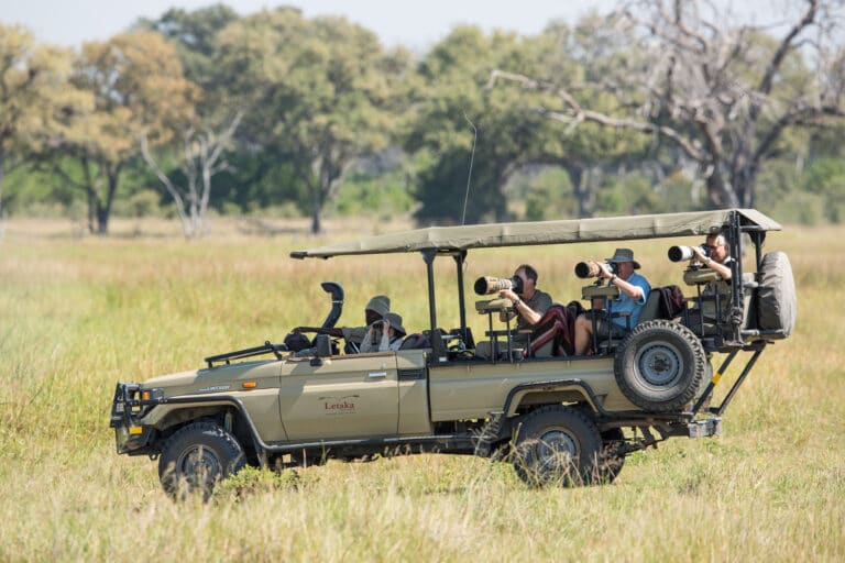 You will spend time game viewing between the dry-land habitats of the lead-wood and camel-thorn woodlands and savannahs and the riverside banks of the Khwai River, as well as in the western parts of the concession. The Mababe region boasts excellent populations of both bull elephant as well as breeding herds. Lion, leopard, serval and African wildcat are common predators of the region with wild dog and cheetah being less common. Buffalo use this area seasonally with large herds moving in during the summer rains. Other ungulates include tsessebe, blue wildebeest, giraffe, kudu, sable antelope, roan antelope and impala, and even eland and oryx in the western parts. It is important to note that night drives and guided walks are not permitted within the national parks and reserves. These activities are conducted outside the boundaries of the Moremi Game Reserve in the Mababe Private Reserve.