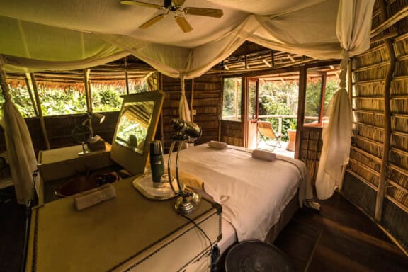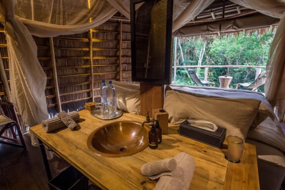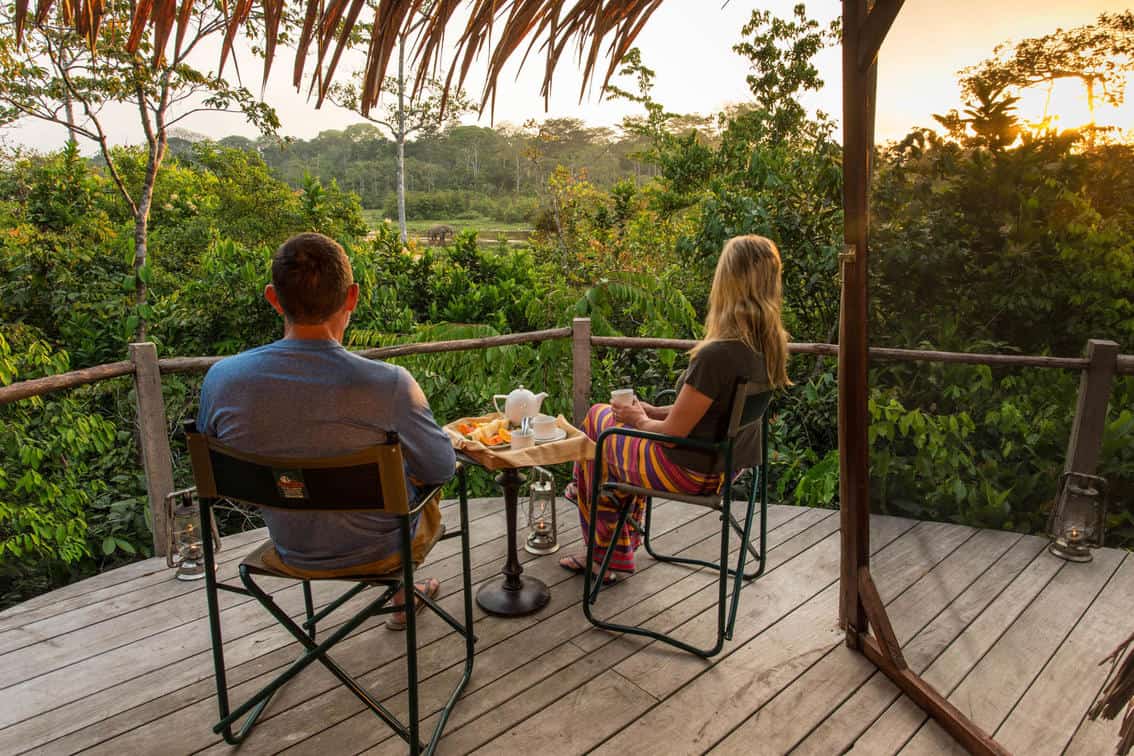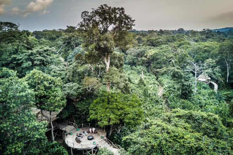 Continue with four nights at Lango Camp to fully experience its dynamic ecosystems through swamp forest exploration and discovering the baïs by kayak, foot, and vehicle. Conclude with three nights at Mboko Camp, where riverine forest and open plains offer a soft landing and sweeping views. This is the most comprehensive and enriching Congo expedition – wild, remote, and deeply rewarding.