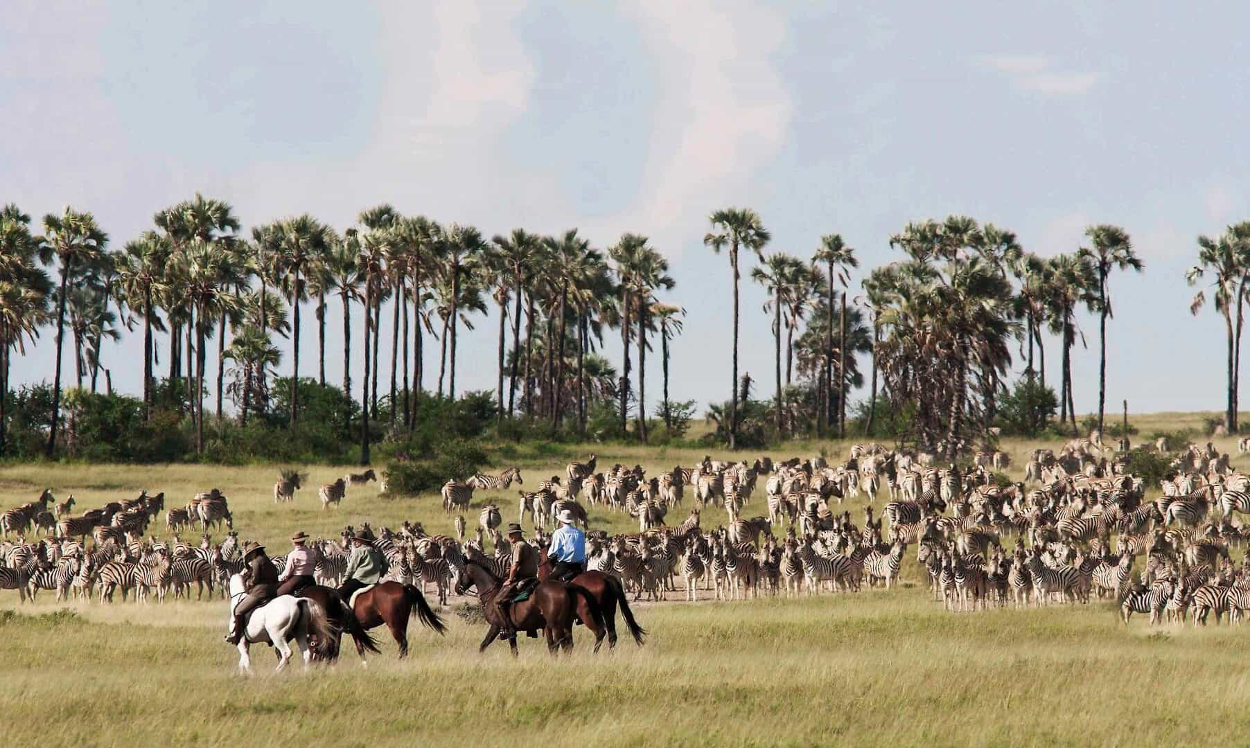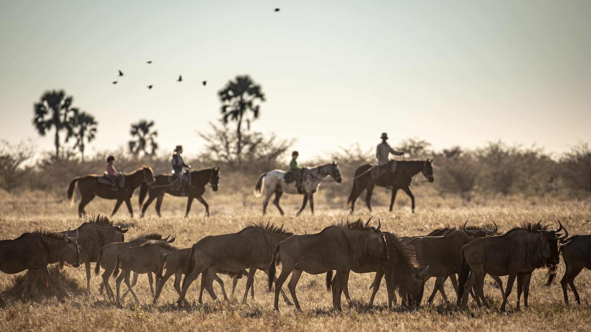 In between all your riding explorations, enjoy a walk with the San Bushmen and siestas around the swimming pool – a soothing escape from the desert sun. At the height of the zebra migration, the adjoining grasslands are awash with zebras, wildebeests, and more.
