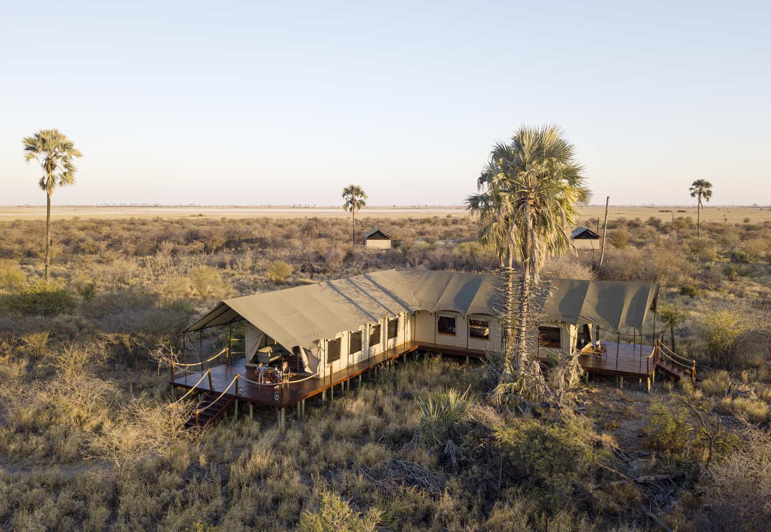 Camp Kalahari sits amongst the acacias and Mokolwane palms of Brown Hyaena Island, on the edge of the Makgadikgadi Salt Pans. Here, you’ll get to explore this wild, unspoilt area like many of the earliest explorers, hunters, and missionaries did – on horseback! Embark on adventurous outrides around the crusty flats, meeting the habituated meerkats and following the animal highways that bring life to this lunar-like landscape.