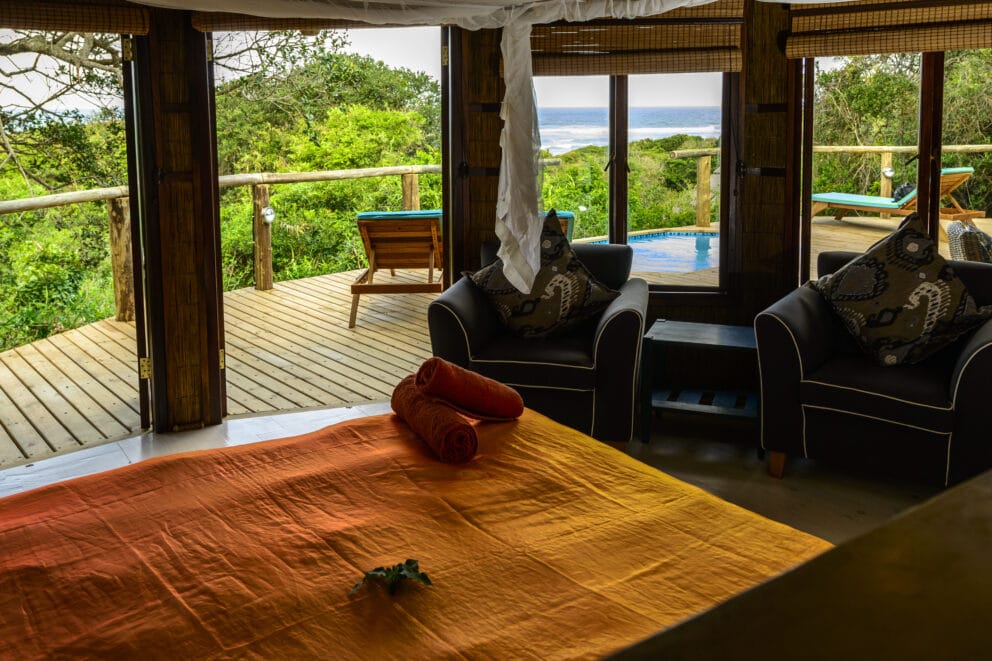 Honeymoon in Kwazulu Natal, combining a beach and bush holiday. You start with a relaxed stay at a secluded small resort overlooking the ocean. Your days will be filled with walking along deserted white sand beaches, snorkeling, or lying by the pool. If you travel between November and February, the turtles are typically coming to nest on the beach. Continue with three nights at Phinda at the romantic Forest lodge, and the most wonderful game viewing. This tour includes a honeymoon discount.