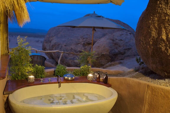 Continue into the rugged beauty of Damaraland, home to desert-adapted elephants and dramatic Damaraland rock formations. Your adventure ends with unforgettable Etosha wildlife encounters on a private concession safari at Etosha Heights Private Reserve, where you’ll enjoy a personalised safari experience with expert guides.