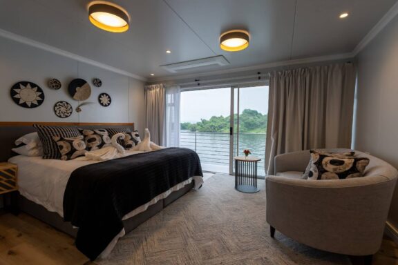 Continue and set sail on the serene waters of Lake Kivu aboard the Mantis Kivu Queen. Over the course of two nights, you’ll relax and unwind while cruising along the tranquil shores, soaking in breathtaking vistas and enjoying unparalleled hospitality.