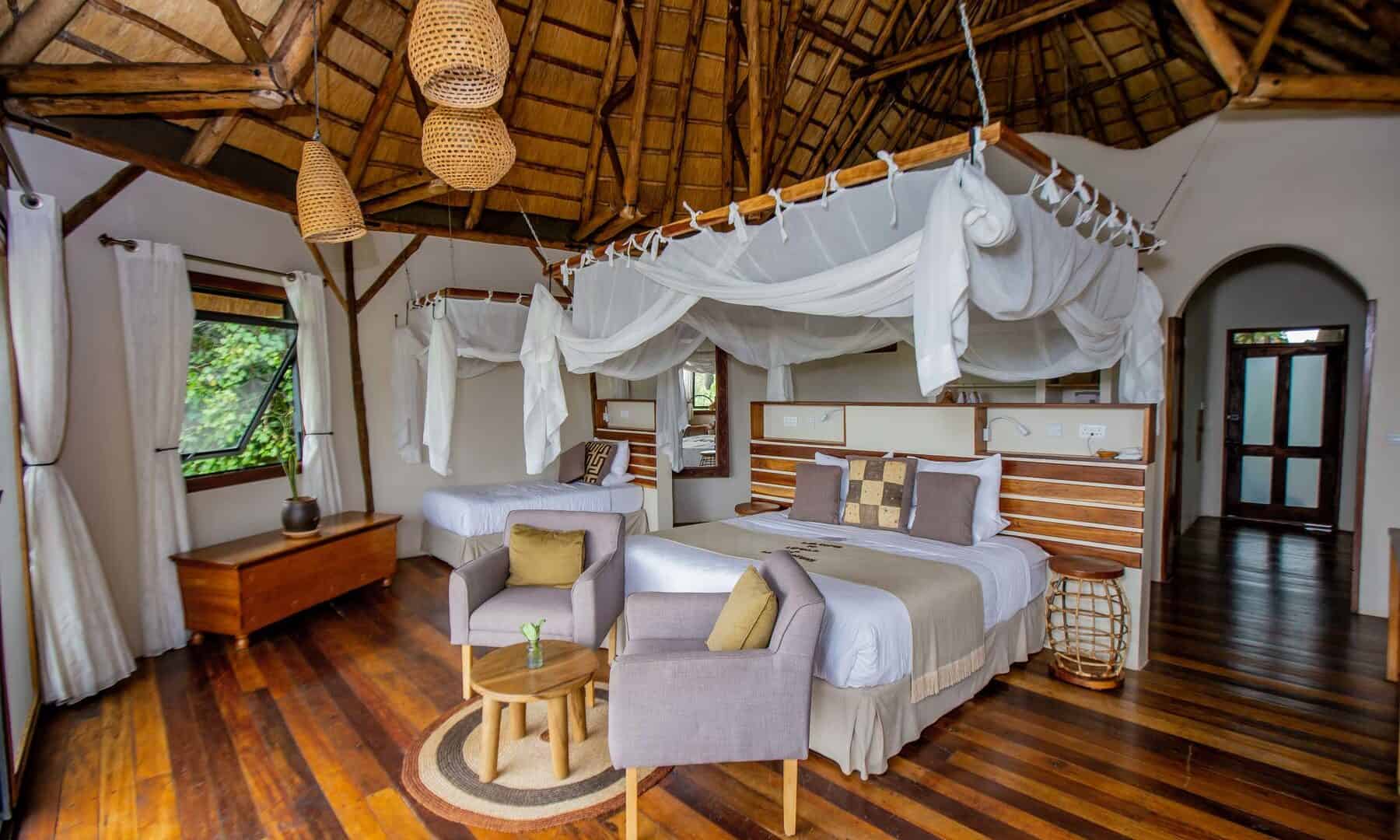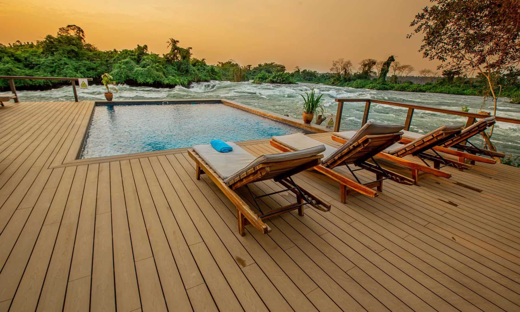 On this small island, you’ll find a lodge that beckons to those seeking a touch of romance or families with older children eager to conquer the nearby rapids. Welcome to Wildwaters, a retreat that extends an invitation to unwind against the backdrop of the rushing river.